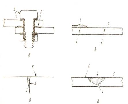 - трещина; 4 – окислы; 5 - металл