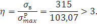 При этом коэффициент запаса прочности будет