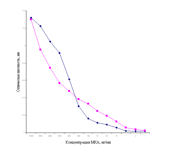 полученные МКА принадлежат к иммуноглобулинам класса G, характеризуются показателем