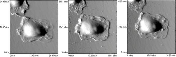 сканирующей зондовой микроскопии (СЗМ) в средах с разными значениями рН при механическом воздействии зонда. Метод СЗМ был выбран