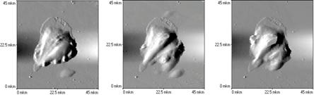 незначительной силой в контактном режиме вызывает «набухание» клеток.