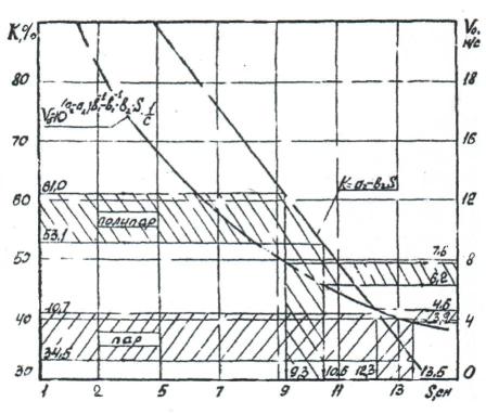 почвы (К), окружная скорость фрезбарабана (Vo ) и подача на нож (S) при прочих