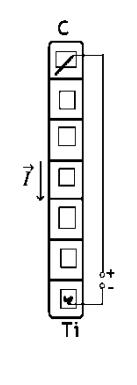 Рис. 2. Схема экспериментальной установки. С – углепластиковый электрод, Тi –