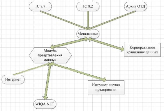 схема интеграции хранилищ данных на примере производственного предприятия.