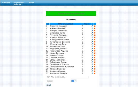 · Мектеп администраторы – оқушылардың аты жөнін, сыныбын енгізеді, және де нәтижелерін