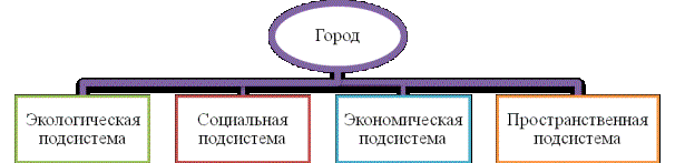 градостроительной системы города показывает нам четыре подсистемы (схема 1).