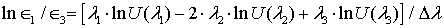 значениям логарифмов спектральных составляющих на крайних (первой и третьей)