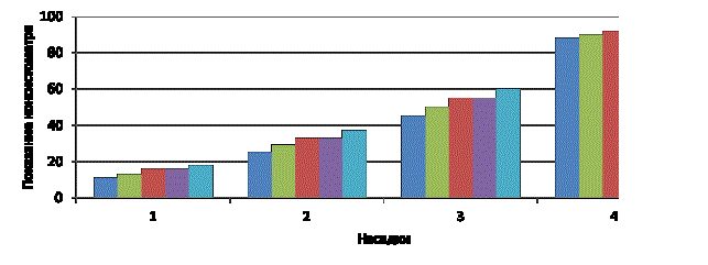 эксперимента использовались 4 насадки. С увеличением доли амарантовой муки в