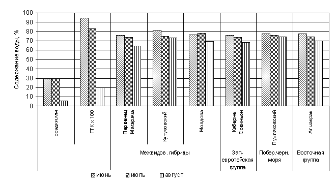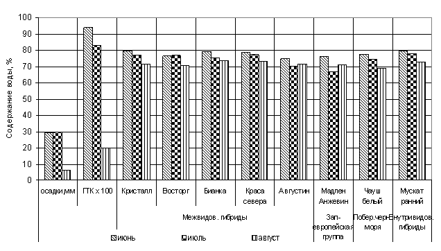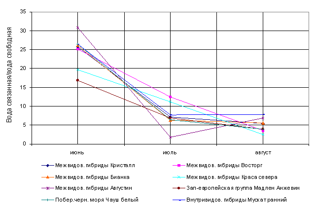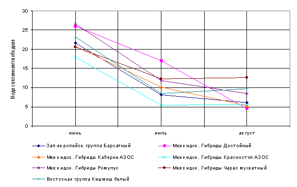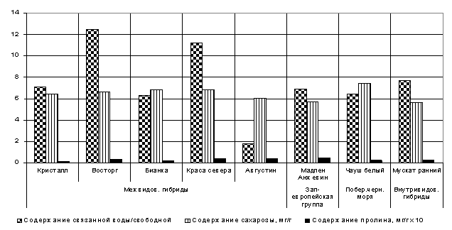 устойчивости растений винограда определяли оводненность, содержание свободной и