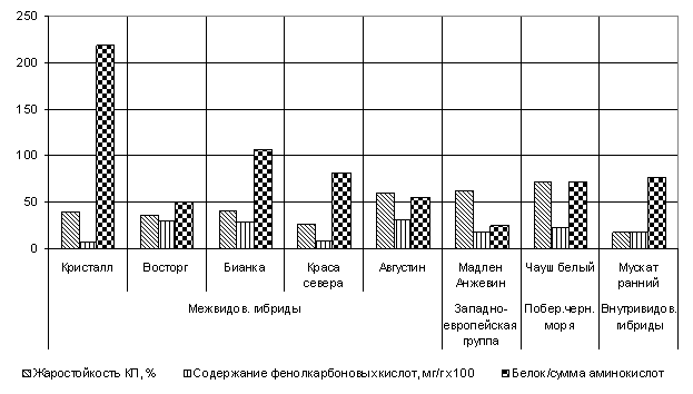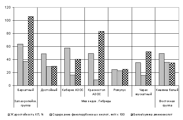 у сортов винограда. У сортов Достойный и Красностоп АЗОС отмечено преобладание