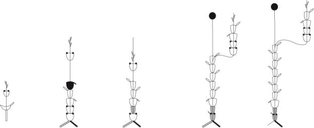 Allium Schubertii - дің орташа генератипті өркеннің құрамы: дамуының 8-12-ші