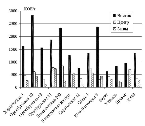 КОЕ/г, то у образцов Восточной зоны оно гораздо выше – вплоть до 2500 КОЕ/г.
