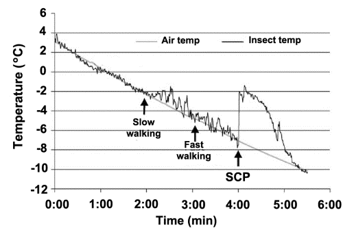 of insects is usually estimated by the supercooling point (SCP), a parameter of