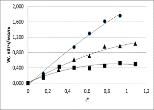 Зависимость удельной электроэнергии от безразмерной плотности тока (i* =