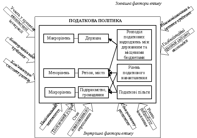 Рис. 1. Рівні та фактори впливу на податкову політику