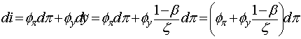 ставки, вставив соотношение dỹ=[(1–β)/ζ]dπ в правило процентной ставки