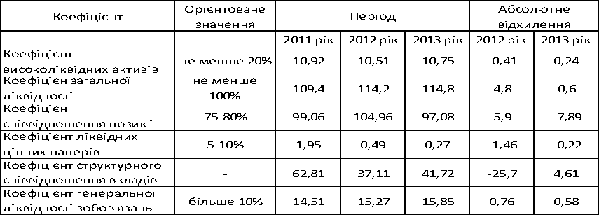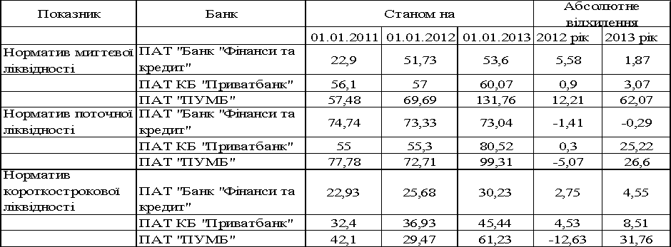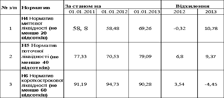 нормативів ліквідності банків України за 2011-2013 рр. Таблиця 2.2