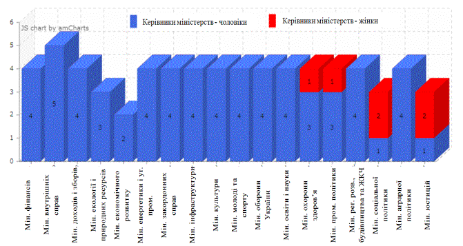 до керівного складу всього 4 з 18 міністерств. Їх частка у керівному складі