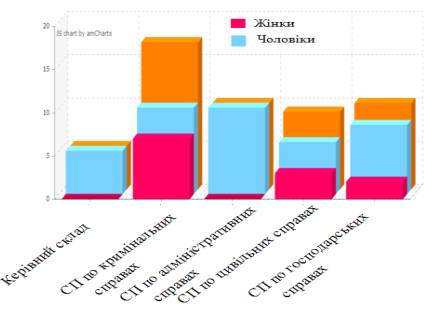 представниць слабкої статі. Тобто, частка жінок у вищих ешелонах судової влади
