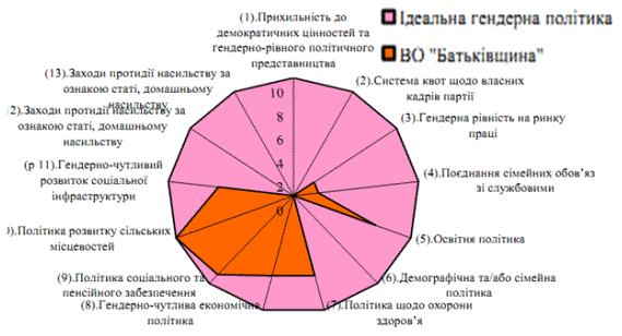 опитуванні [1]. Наприклад, пріоритети в гендерній політиці ВО «Батьківщина» концентруються