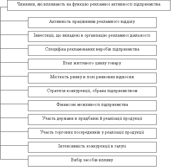 параметр оптимізації з чинниками, що впливають на рекламну активність.