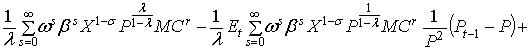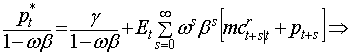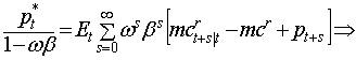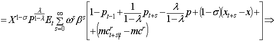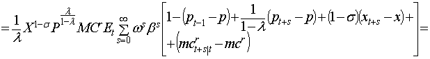 последних слагаемых содержат первые производные по Pt*, Pt–1, Pt+s и Xt+s соответственно. Все переменные оценены в устойчивом