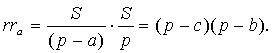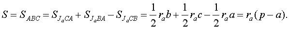 Свойство 3. Площадь S треугольника ABC равна S = rа(р – а).