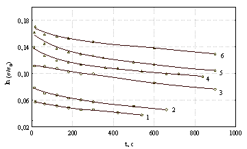 расплавленного перхлората лития во времени приведена в таблице 2.