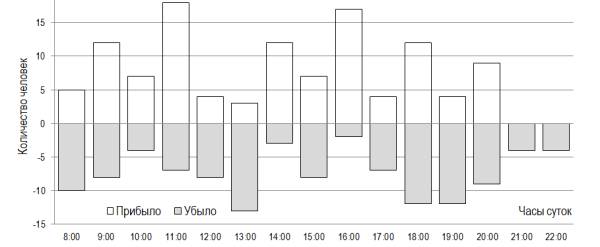 исследования заключалась в определении числа вошедших и вышедших посетителей за