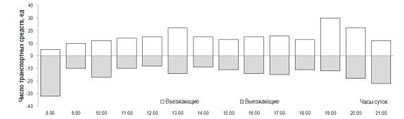 4. Распределение числа въезжающих и выезжающих транспортных средств на