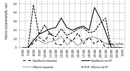 посетителей, прибывших на общественном транспорте, внутри часового периода