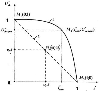 холостого хода Udc.xx и ток короткого замыкания iK3. С учетом этих данных из (4), (6) определим эквивалентные коэффициенты a,b,c,d,m0,m1,m2, оптимального тока