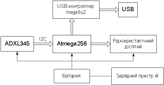 акселерометра використовується мікропроцесор компанії Atmel Atmega256. Зв'язок акселерометра з