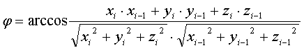 момент часу. Кут між векторами розраховується за правилами векторної алгебри і