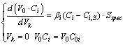 decomposition (k4), and the concentrations of the substances on