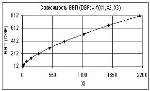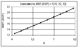 Рис. 2. Зависимость ВВП (GDP) = f(Х1, Х2, Х3) Х1