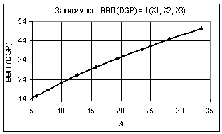 Рис. 1. Зависимость ВВП (GDP) = f(Х1, Х2, Х3) Х1