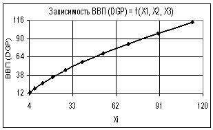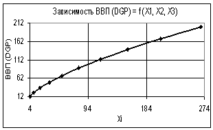 Так на рис. 1 показана зависимость ВВП (GDP) = f(Х1, Х2, Х3) при следующих