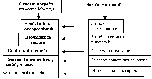 залежність між певними групами потреб і засобів мотивації персоналу. Тому для