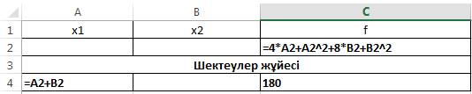Microsoft Excel –де келесі сызықты емес программалау есебін