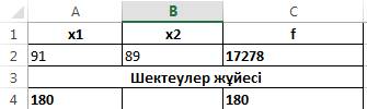 Excel процессор көмегімен есепті шешу келесі нәтижелерді береді: