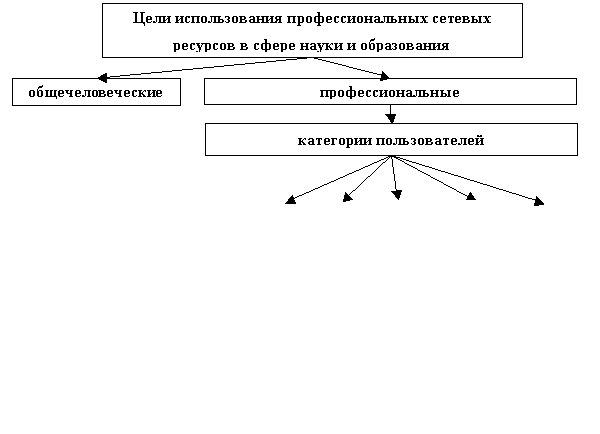 Цели использования профессиональных сетевых ресурсов в сфере науки и образования М.Г. Крейнес и А.А. Афонин [2, с.104–105] выделяют две категории (см. рис.):