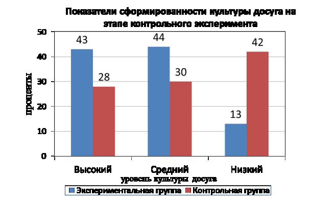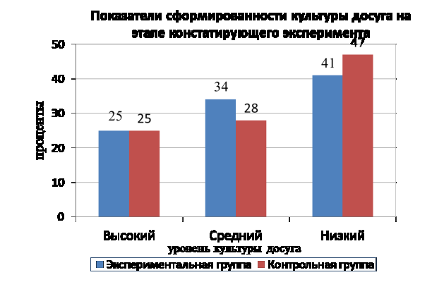 досуга отмечен у 7%, средний уровень характерен для 30%, низкий уровень
