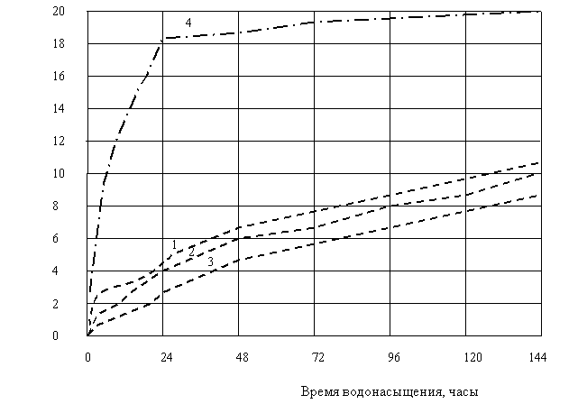 зависимости от продолжительности водопоглощения показано на графике (рис.1).
