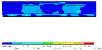 составили 32 МПа (рис.2), а полные перемещения – 141мкм (рис.3).