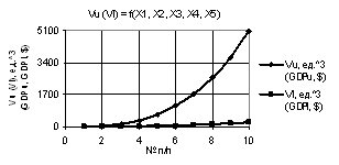 Рис. 3. Vu (Vl) = f(X1, X2, X3, Х4, Х5) при
