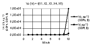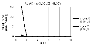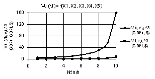 Рис. 4. Vu (Vl) = f(X1, X2, X3, Х4, Х5) при Х1 = 1…10, Х2 = Х3 = Х4 = Х5 = 1…0.1 |