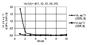 рисунках 3 и 4 показаны зависимости Vu (Vl) = f(X1, X2, X3, Х4, Х5), когда переменные были Х1 = 1…10, Х2 = Х3 = Х4 = 1…0,1, Х5 = 1 и Х1