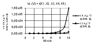 Рис. 3. Vu (Vl) = f(X1, X2, X3, Х4, Х5) при