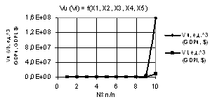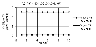 Рис. 11. Vu (Vl) = f(X1, X2, X3, Х4, Х5) при Х1 =1…10,Х2 =1,Х3=Х4 =1…0.1,Х5 = 0.1…1 |